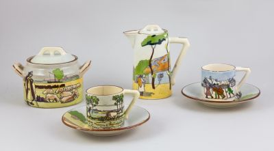 Jelzés: | a kávéskanna alján masszába nyomva: 390 / 4; feketével bélyegzett gyári jegy: FE, felette koronával, alatta MADE IN HUNGARY, mellette Hand painted felirat |