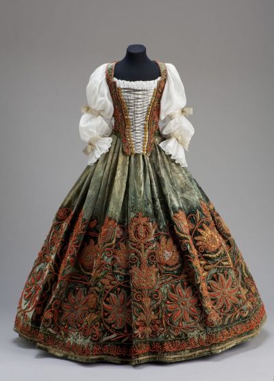 Az itt bemutatott, itáliai bársonyból Magyarországon szabott és hímzett szoknya és a hozzá tartozó vállfűző együttese a régi magyar díszöltözet rendkívül kvalitásos emléke. Egykor patyolat ingváll és széles csipkekötény is tartozott hozzá, az előbbit napjainkban készült rekonstrukció pótolja. Az öltözék szabásmódja, a lapokból szabott szoknya és ujjatlan vállfűzője harmonikusan ötvözi a korábbi századok helyi hagyományait a gyorsan változó nyugat-európai divat elemeivel.