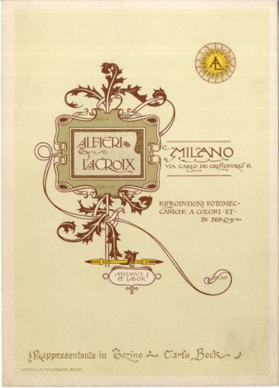 Céghirdető kártya - Alfieri Lacroix - Milano, Riproduzioni fotomeccaniche a colori et in nero.