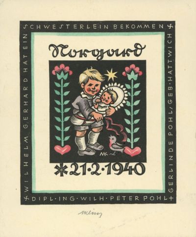 Alkalmi grafika - Értesítés születésről: Dipl. Ing. Wilh. Pohl, Gerlinde Pohl