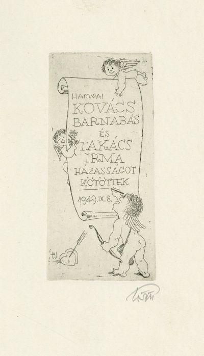 Alkalmi grafika - Házasságkötési értesítés: Hamvai Kovács Barnabás és Takács Irma házasságot kötöttek