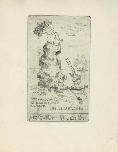 Alkalmi grafika - Karácsonyi és újévi üdvözlőlap: Szép karácsonyt és boldog újévet kívánnak Dr. Illyésék