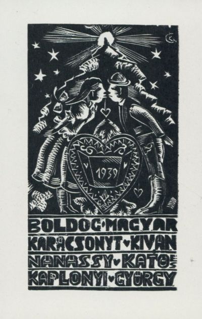 Alkalmi grafika - Karácsonyi üdvözlet: Boldog magyar karácsonyt kíván Nánássy Kató és Kaplonyi György