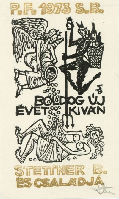 Alkalmi grafika - PF 1973 Boldog új évet kíván Stettner Béla családja