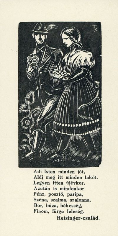 Alkalmi grafika - Reisinger család újévi jókívánságai versikében