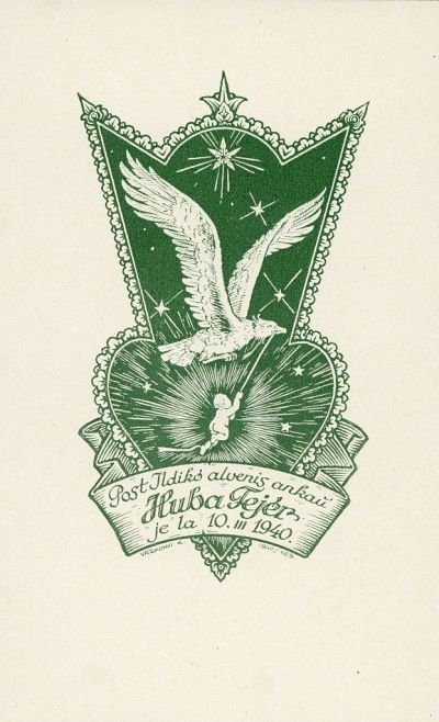 Alkalmi grafika - Születési értesítés: Post Ildikó alnevis ankau Huba Fejér je la 10. III. 1940.