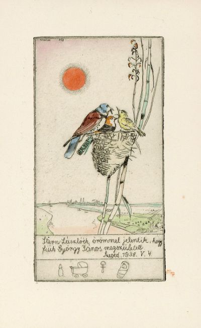 Alkalmi grafika - Születésről értesítés: Stern Lászlóék örömmel jelentik, hogy fiuk … megszületett