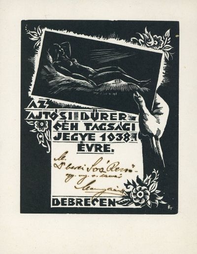Alkalmi grafika - Tagsági jegy: Az Ajtósi Dürer Céh 1938. évre, dr. berei Soó Rezső részére