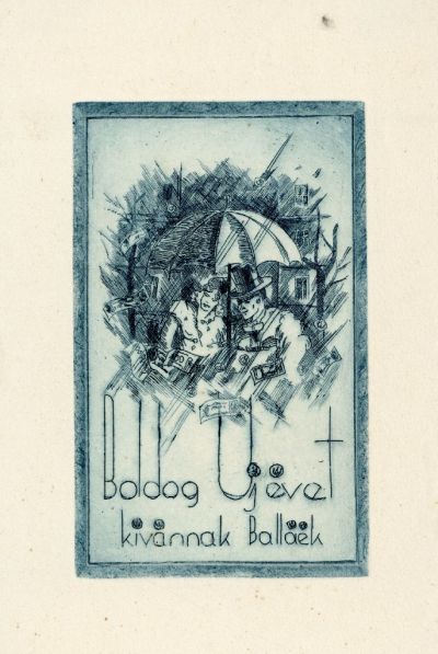 Alkalmi grafika - Üdvözlőlap: Boldog ujévet kívánnak Balláék