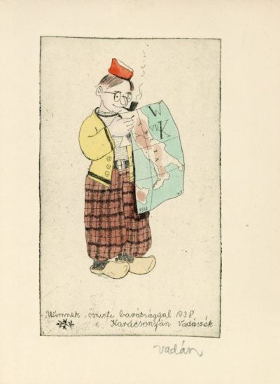 Alkalmi grafika - Üdvözlőlap: Wimnek őszinte barátsággal… Vadászék