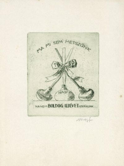 Alkalmi grafika - Újévi üdözlőlap: BUÉK Bánszki, Nagy F. Oláh I. Ma mi sem metszünk