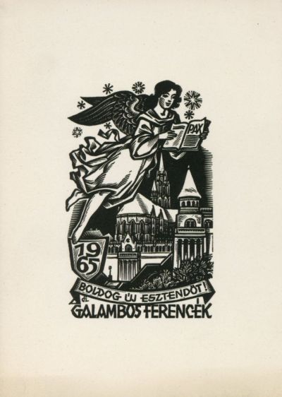 Alkalmi grafika - Újévi üdvözlet: 1965 Boldog új esztendőt! Galambos Ferencék