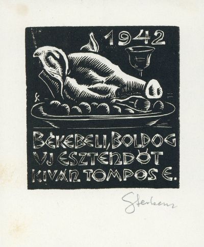 Alkalmi grafika - Újévi üdvözlet: Békebeli boldog uj esztendőt kíván Tompos E( rnő)