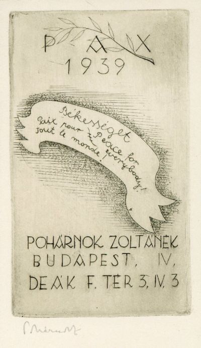 Alkalmi grafika - Újévi üdvözlet: Békességet (több nyelven) Pohárnok Zoltánék