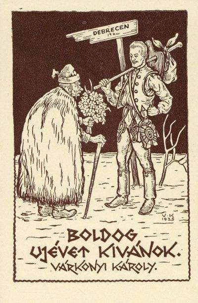 Alkalmi grafika - Újévi üdvözlet: Boldog új évet kívánok Várkonyi Károly