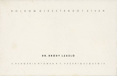 Alkalmi grafika - Újévi üdvözlet: Boldog újesztendőt kíván Dr. Bródy László a Hungária Nyomda R.T. vezérigazgatója