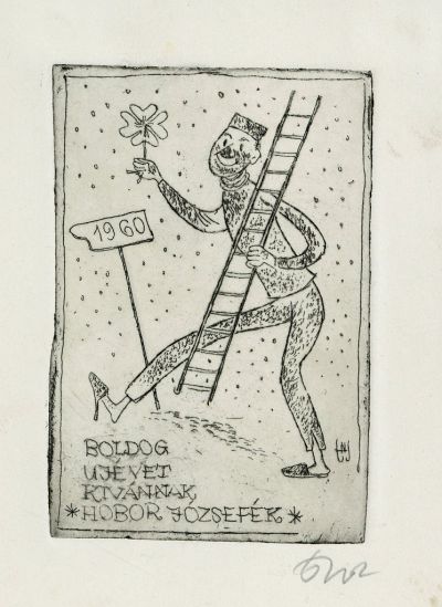 Alkalmi grafika - Újévi üdvözlet: Boldog újévet kívánnak Hobor Józsefék