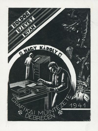 Alkalmi grafika - Újévi üdvözlet: BÚÉK Nagy Károly Grafikai Műintézete Debrecen