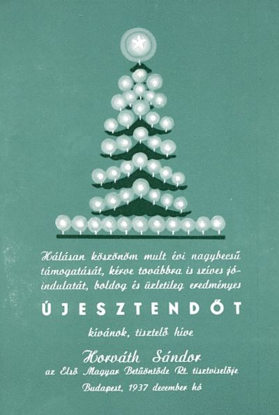 Alkalmi grafika - Újévi üdvözlet: Hálásan köszönöm...BUÉK Horváth Sándor, Első Magyar Betűöntöde Rt.