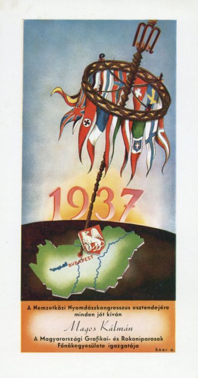 Alkalmi grafika - Újévi üdvözlet: Magos Kálmán, Nemzetközi Nyomdászkongresszus esztendejére