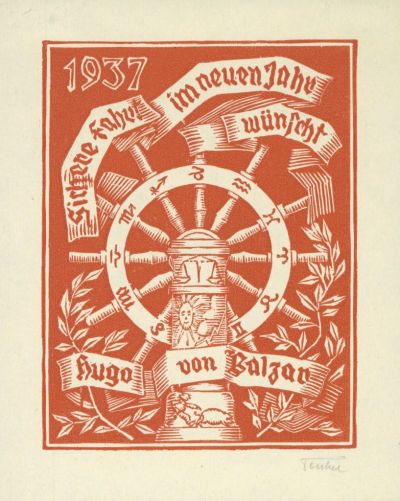 Alkalmi grafika - Újévi üdvözlőlap: Sichere Fahrt im neuen Jahr wünscht Hugo von Balzac