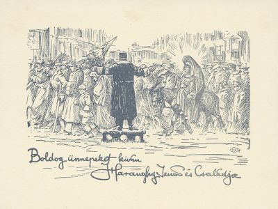 Alkalmi grafika - Ünnepi üdvözlet: Boldog ünnepeket kíván Haranghy Jenő és Családja