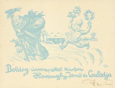 Alkalmi grafika - Ünnepi üdvözlet: Boldog ünnepeket kíván Haranghy Jenő és Családja
