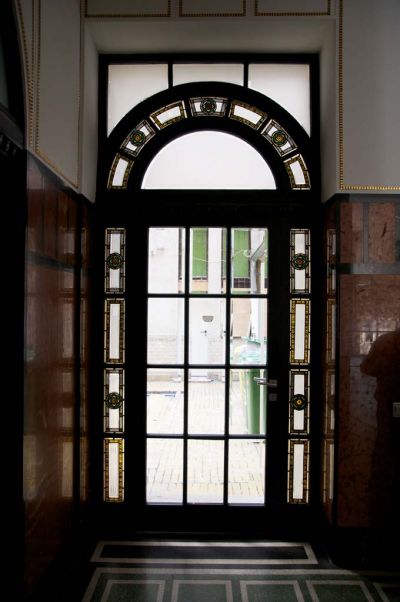 Épületfotó - a Kasselik-alapítvány üzlet-és bérháza (Budapest, Vörösmarty tér 3.) -a kapualj udvari szakasza az udvarra vezető ajtóval