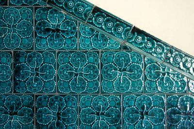 Épületfotó - a kecskeméti Cifrapalota főlépcsőházának kerámia falburkolata