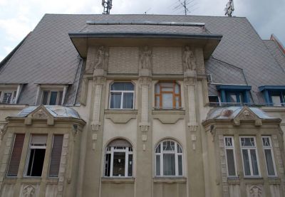Épületfotó - a Ráday utca 9. szám alatti lakóház főhomlokzatának emeleti részei a tetővel