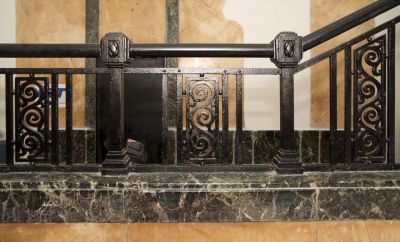Épületfotó - lakó-és üzletház (Budapest, Deák Ferenc u. 17.) kapualjának lépcsőkorlátja