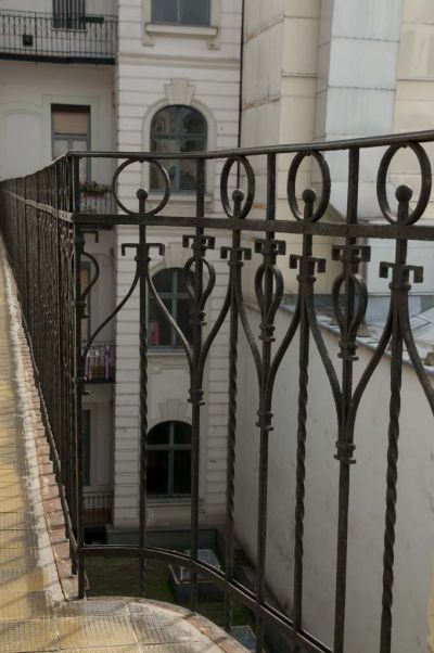 Épületfotó - Popper Lajos háza (Budapest, Paulay Ede utca 37.) -a függőfolyosó korlátrácsa