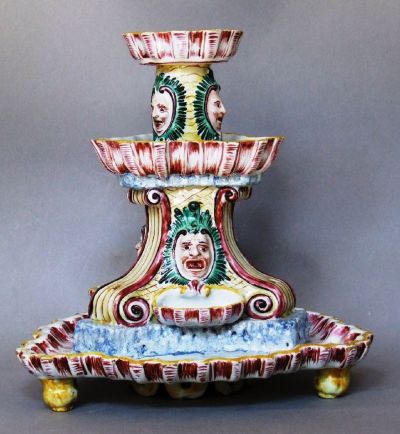 Technika: | fehér ónmázzal fedett; öntött és mintázott elemekkel; színes mázakkal festett |