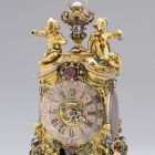 Az óra szerkezetét francia eredetű, Londonba települt óraműves dinasztia egy tagja, Charles Cabrier készítette a 18. század közepén. A kisbetűs vésett szignatúra a lánckerekes áttételű gátszerkezet alaplemezén olvasható: C. Cabbrie (sic!) London / 2553. A négyjegyű szám bizonyára egy szerkezettípus jelölésére szolgál. Az óraház feltehetően Drezdában készült.