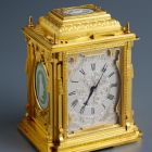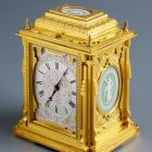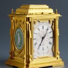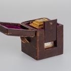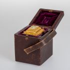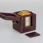 Asztali óra (miniatűr útióra) bőrtokkal, kulccsal