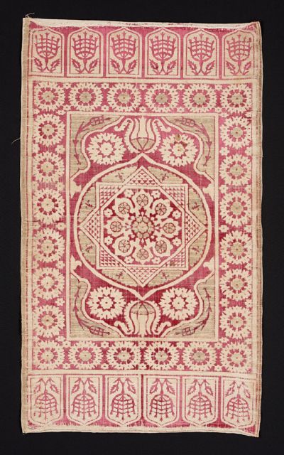 Technika: | fémfonallal brosírozott; nyírott bársonyon láncatlasz alapú minta |