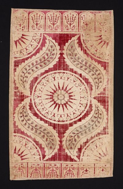 Technika: | fémfonallal brosírozott; nyírott bársonyon láncatlasz alapú minta |