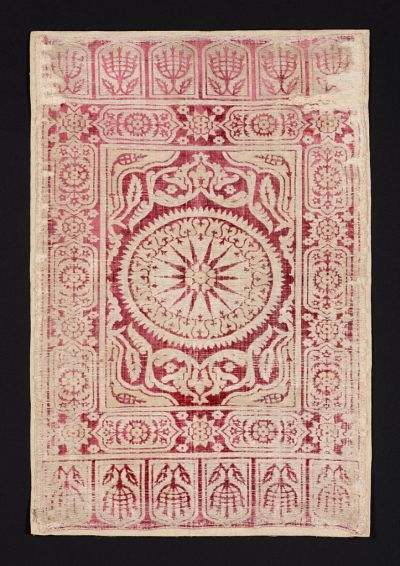 Technika: | fémfonallal brosírozott; nyírott bársonyon láncatlasz alapú minta |