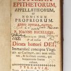 Officina epithetorum, appelativorum, et nominum propriorum. Editio septima auctior, Authore P. Joanne Bucelleni, e societate Jesu, et ab eodem Dicata honori Dei, Immaculate conceptae Virginis ac Coelitum, nec non utilitati, &facilitati eorum, qui humaniores literas colunt. Tyrnaviae : Typis Academicis, per Fridericum. Gall. Anno M.DCC.XXI
