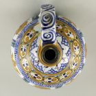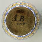 | Technika: | fehér ónmázzal fedett; korongozott; nyers mázra fémoxidokkal festett |