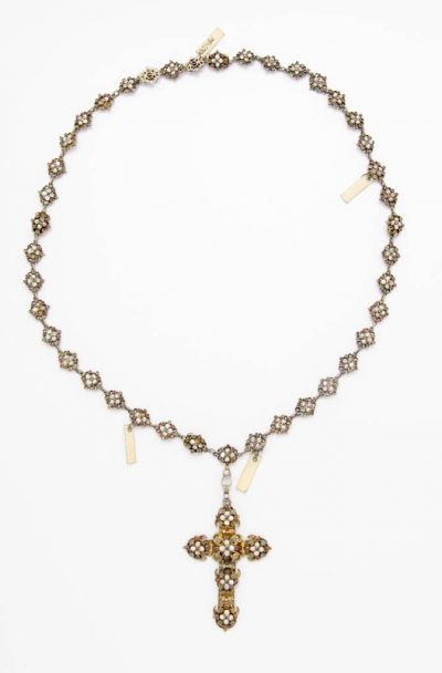 Anyag: | almandin; ezüst; gyöngy; smaragd |