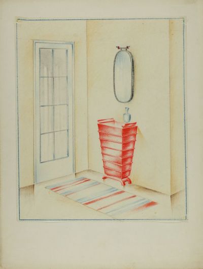 Bútorterv - előszoba szőnyeggel, tükörrel, kis szekrénnyel