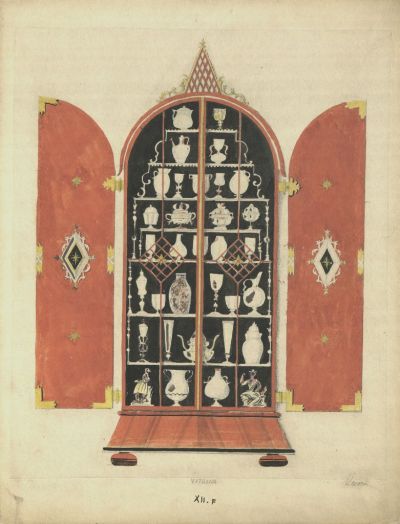 Bútorterv - festett, üvegezett, kétajtós dísztárgy-szekrény