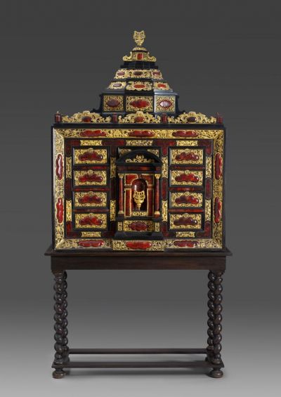 | Anyag: | ébenfa borítás; fenyőfa alap (vakfa); réz veretek; teknőcpáncél borítás |