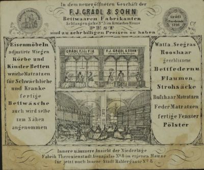 Céghirdető kártya - pesti Grádl F. J. és fia ágynemű gyáros cég