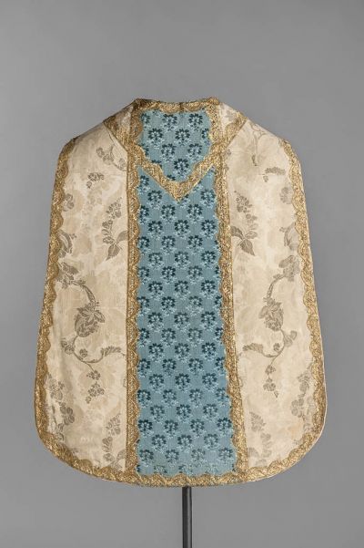 A miseruhához tartozó dalmatika (ltsz.: 61.626) azonos anyagból készült, kolonnája és ujjain egy-egy sáv kék bársony. A szabásvonalakat és széleket aranyfonalból vert csipke szegi. Bélése sötétkék vászon.