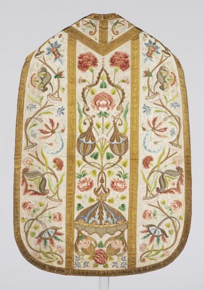 A miseruha szabása jellegzetes, az elején hegedűalakú, barokk forma. Elő- és hátlapja egyaránt hármas tagolású, s ezekbe a sávokba illeszkedik a hímzés. A festői módon árnyalt virághímzés alulról felfelé hullámzó indákból, valós és fantasztikus virágokból, bőségszarukból és egy hatalmas baldachinból áll. A miseruha a trencséni volt jezsuita, majd piarista rendházból származik a liturgikus öltözék további darabjai a Magyar Nemzeti Múzeumban és az Iparművészeti Múzeumban találhatók.