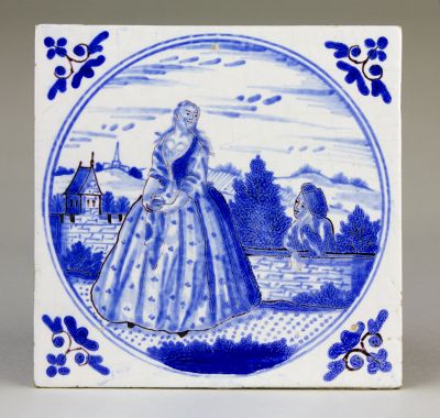 Technika: | fehér ónmázzal fedett; nyers mázra fémoxiddal festett; sablonnal formázott |