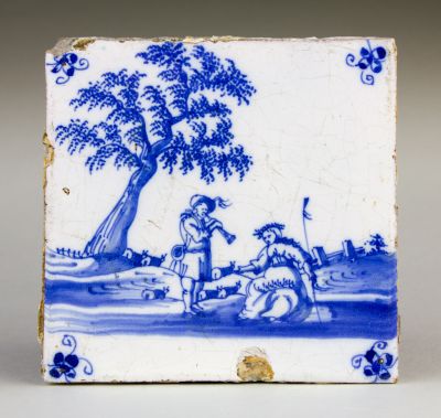 Technika: | fehér ónmázzal fedett; kobaltoxiddal festett; préselt |
