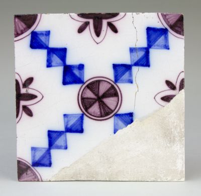 Technika: | fehér fedőmázzal fedett; fémoxidokkal festett; sablonnal formázott |